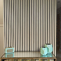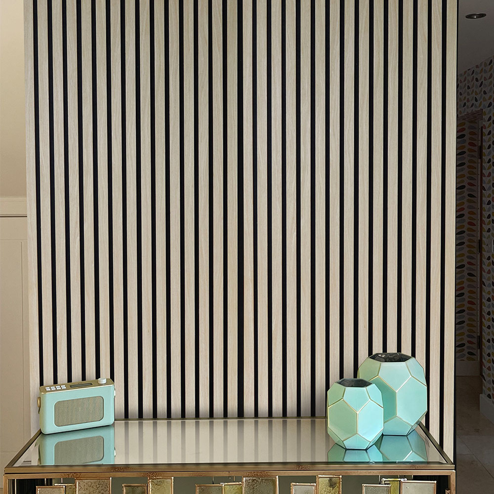 - Fully wrapped 13mm deep x 27mm wide MDF slats display the wood effect veneer for a natural décor finish